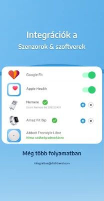 A DiabTrend azonban nem csupán egy napló; egy személyes előrejelző rendszer, mely már órákkal előbb jelzi a várható vércukorszint-ingadozásokat, így proaktívan megelőzheti a hipo- vagy hiperglikémiás epizódokat. Az alkalmazás intelligensen tanulja az Ön egyedi anyagcseréjét, folyamatosan finomítva előrejelzéseit, és testreszabott emlékeztetőkkel segíti a gyógyszerbevitelt, étkezéseket és méréseket. Kompatibilis számos népszerű szenzorral (például Accu-Chek, FreeStyle Libre 1) és szoftverrel (Google Fit, Apple Health), sőt, még aktivitáskövetővel (Amazfit Bip) is összekapcsolható, garantálva, hogy minden releváns adat egy helyen, szinkronban legyen.