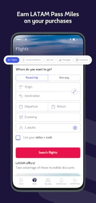 Kezdje az utazástervezést a legkedvezőbb ajánlatok felfedezésével és jegyek vásárlásával. A LATAM travel app segítségével könnyedén kereshet belföldi és nemzetközi járatokat, válogatva a promóciós lehetőségek közül. Kezelje kényelmesen LATAM Pass mérföldjeit és minősítő pontjait, élvezve a kategóriájához tartozó exkluzív előnyöket. Rugalmasan módosíthatja foglalását, változtathatja indulási idejét, hozzáadhat extra poggyászt, és kiválaszthatja kedvenc ülőhelyét a gépen, így teljesen személyre szabhatja az utazást igényeinek megfelelően.