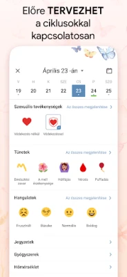 Személyes adatai teljes biztonságban vannak egy egyedileg beállítható jelszóval vagy PIN-kóddal. Az alkalmazás nem csupán funkcionális, hanem stílusos is, letisztult felületével kényelmes használatot biztosít. Az „absztinens" üzemmód diszkréten elrejti a szexuális együttlétekre és termékenységre vonatkozó információkat, ha erre van szüksége. Tekintse meg korábbi ciklusainak listáját, fedezze fel a mintázatokat és az esetleges rendellenességeket, mélyítve ezzel önismeretét. Az alkalmazás számos nyelven elérhető, hogy a világ bármely pontján támogathassa a nőket egészségük tudatos kezelésében. Élvezze az életet, magabiztosan és felkészülten!