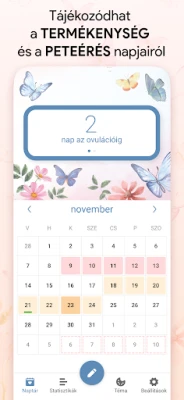 Az alkalmazás részletes funkcióival minden eddiginél könnyebben átláthatja ciklusa sajátosságait. Állítson be emlékeztetőket a menstruációra, az ovulációra, a termékeny napokra vagy a gyógyszerek bevételére, így mindig képben lesz. Rögzítse napi közérzetét, tüneteit, gyógyszerhasználatát, sőt, akár méhnyak-megfigyeléseit is. Az intelligens ciklus előrejelző kalkulátor, mely a luteális szakasz hosszát is figyelembe veszi, pontosan megmutatja a várható időpontokat, segítve a tervezésben. Egy dinamikus idővonalon és egy gyönyörű, összefoglaló főképernyőn bármikor áttekintheti az összes felvitt adatot.