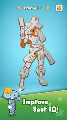 Készen állsz egy igazi szellemi tornára, ami próbára teszi logikai és stratégiai képességeidet? A Nuts And Bolts - Unscrew Puzzle egy magával ragadó mobiljáték, amely egy teljesen új megközelítést kínál a fejtörők világában. Merülj el egy olyan univerzum mélyére, ahol minden csavar elengedhetetlen a továbblépéshez, és minden egyes lépésed stratégiai jelentőséggel bír. A feladat egyszerűnek tűnik: okosan távolítsd el a csavarokat, hogy a különböző alakú elemek a megfelelő helyre hulljanak, de a megoldás megtalálása gyakran rafinált gondolkodást igényel.