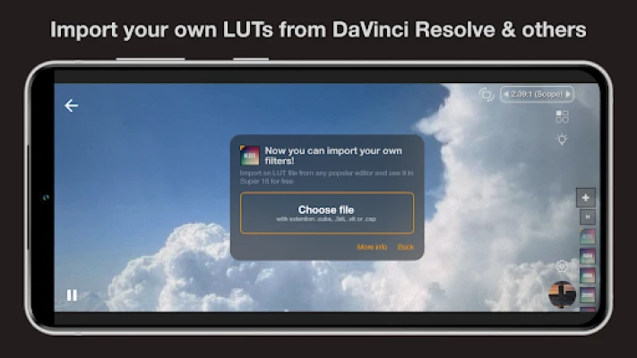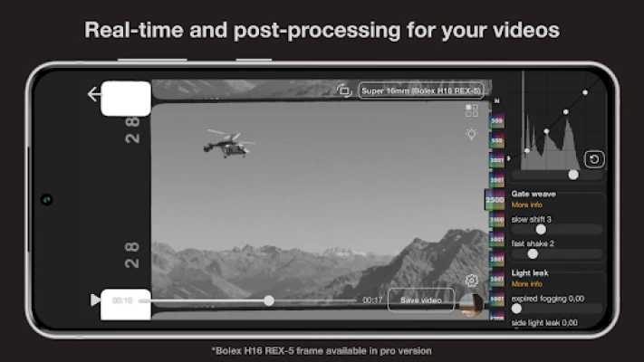 A **Super 16** nem csak utómunkálati eszköz, hanem egy teljes értékű professzionális kamera is. A Super 16 mód segítségével precízen szabályozhatja a fókusz- és expozíciós beállításokat, valamint a zoomot, hogy a legkülönfélébb jeleneteket is tökéletesen rögzítse. Tapasztalja meg az autentikus moziélményt a 24 képkocka/másodperc sebességű felvétellel, amennyiben készüléke támogatja. Ami igazán figyelemre méltó, hogy a feldolgozási funkciókkal együtt minden paraméter módosítható a felvétel folyamán, így maximális rugalmasságot biztosít. A kényelem jegyében létrehozhatja saját előbeállításait, hogy azonnal, konfigurálás nélkül kezdhessen el felvenni. Sőt, a beépített videószerkesztővel meglévő videófájljait is könnyedén feldolgozhatja, kibővítve ezzel kreatív lehetőségeit.